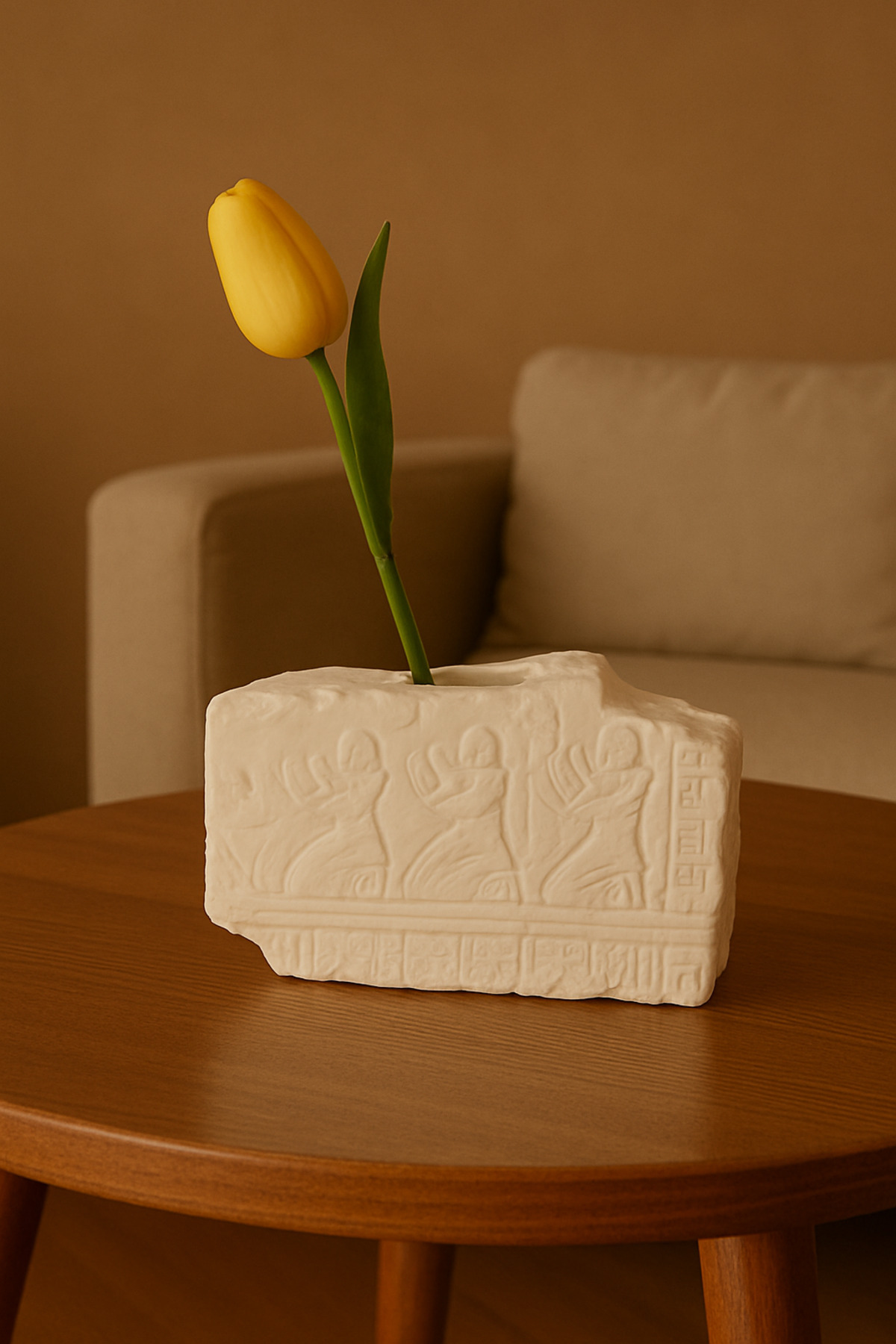 - El yapımı bu özel beton vazo, üzerindeki antik motif detaylarıyla yaşam alanlarınıza sanatsal bir dokunuş katar. Modelleme ve heykel harcı kullanılarak üretilmiş olup yüksek sağlamlık ve uzun ömürlü kullanım sunar.