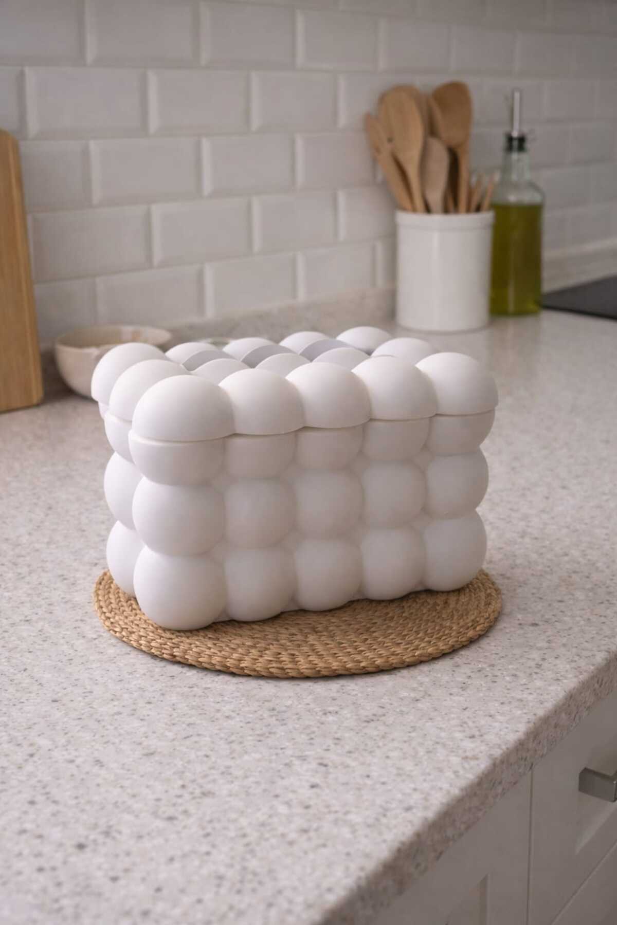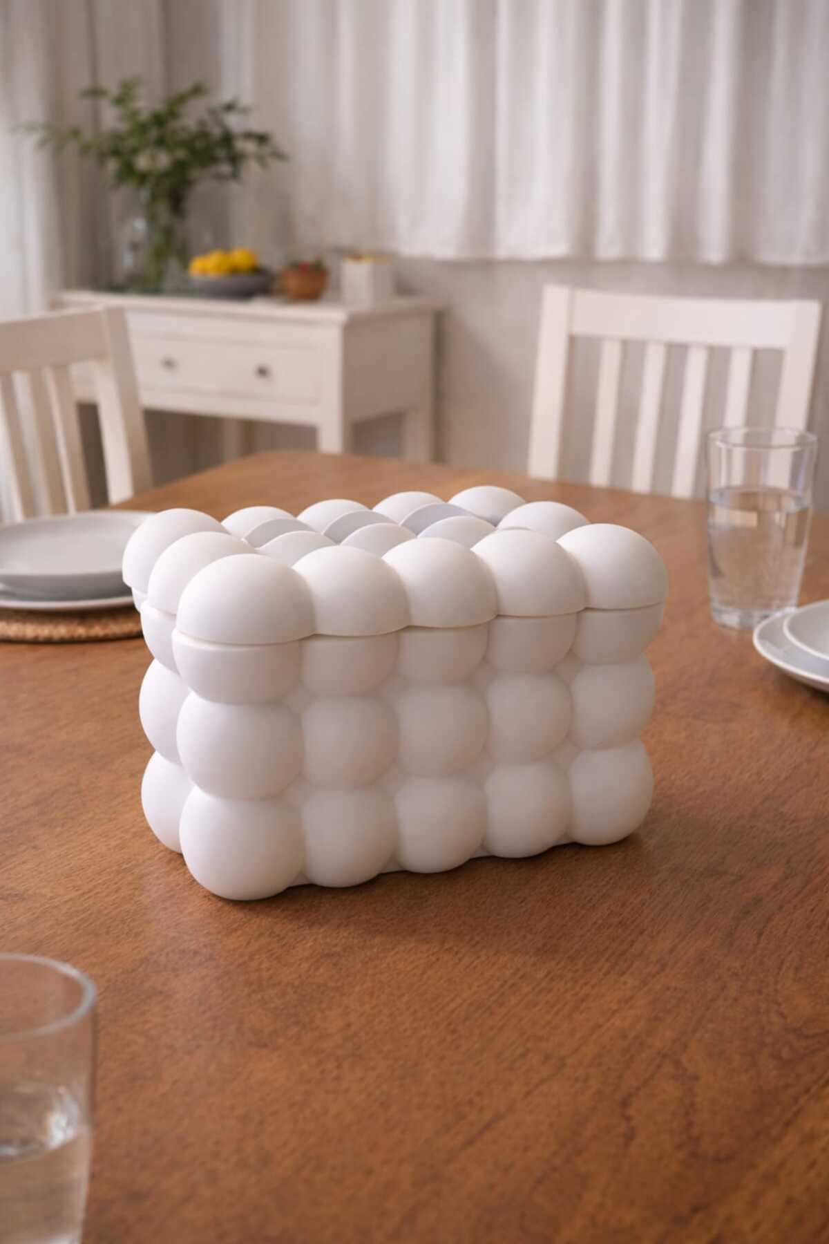 Ürün Açıklaması Modern balon form tasarımıyla öne çıkan dekoratif peçetelik, masa ve mutfak dekorasyonuna sade ama dikkat çekici bir şıklık kazandırır.