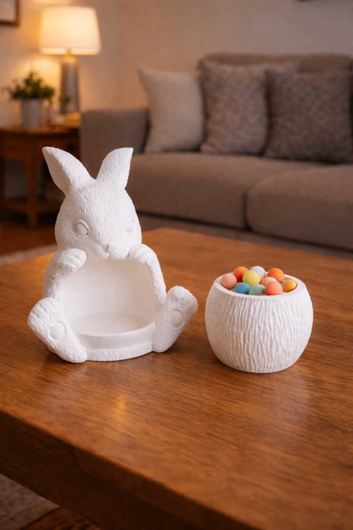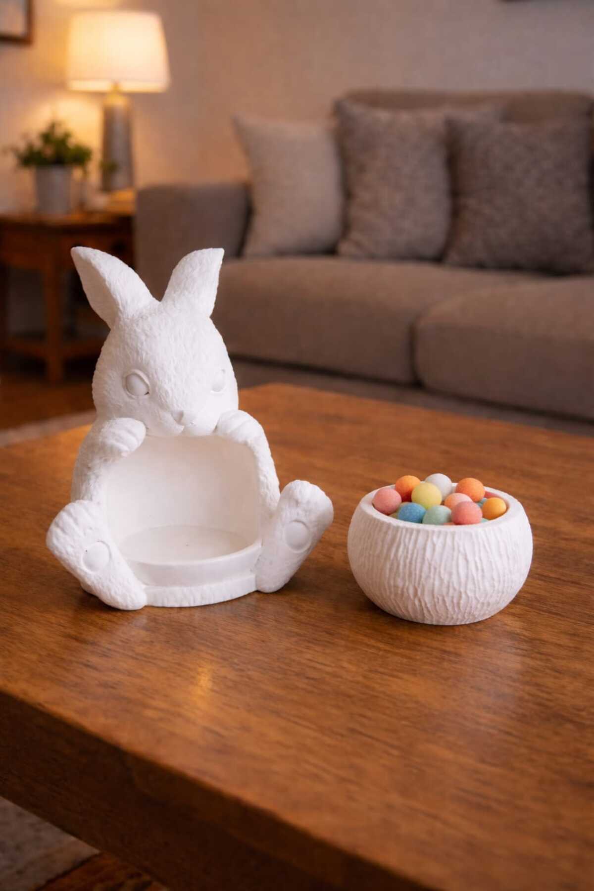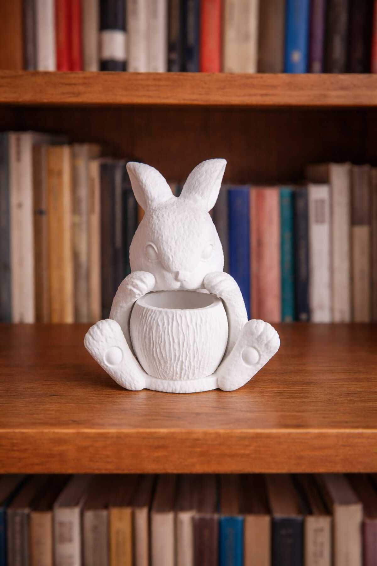 Ürün Açıklaması Sevimli tasarımıyla öne çıkan tavşan figürlü beton saksı, yaşam alanlarınıza sıcak ve minimal bir dokunuş katar.