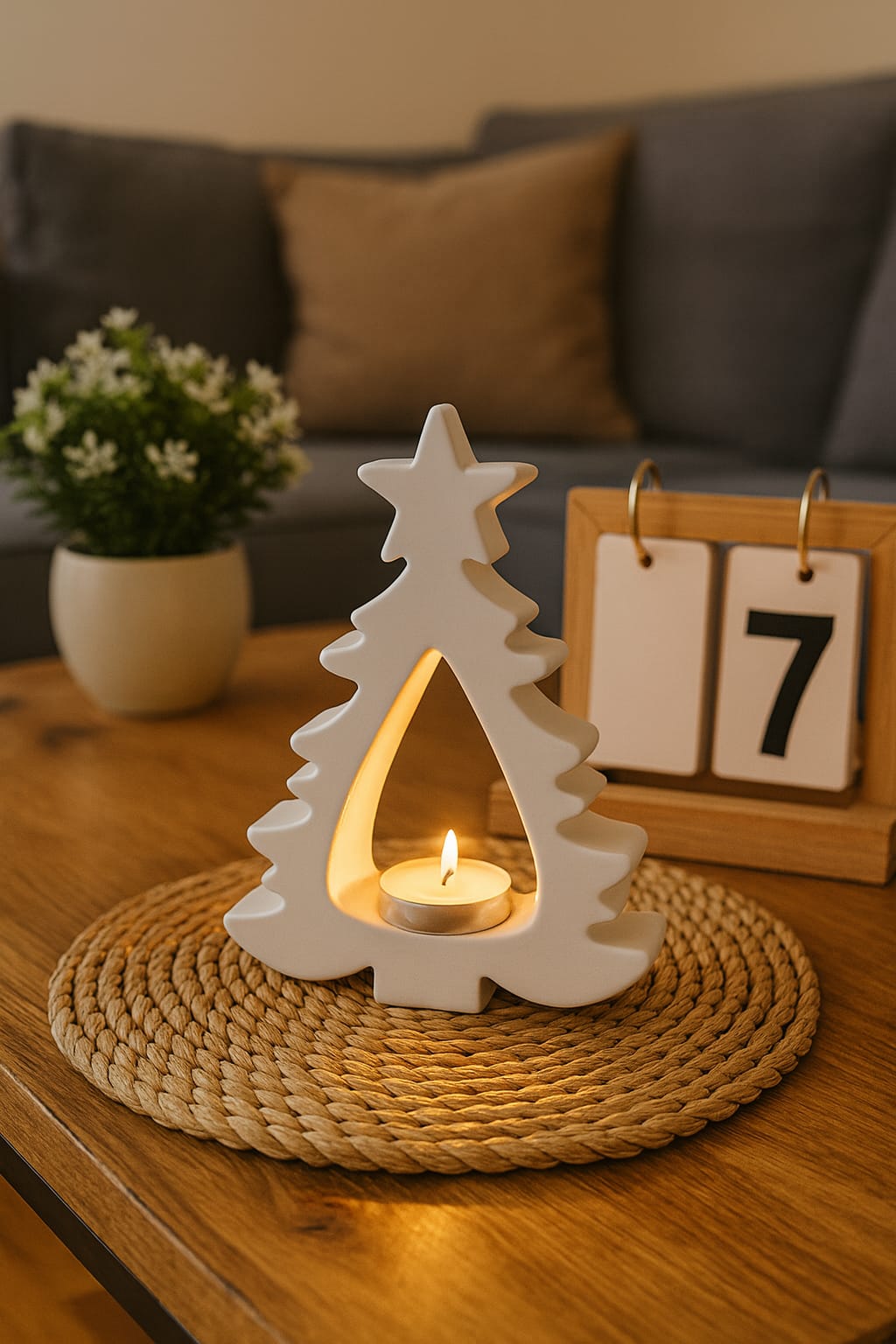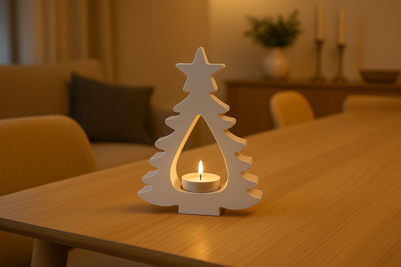 El yapımı yılbaşı ağaç formunda tasarlanan bu dekoratif tealight mumluk, yeni yıl sofralarınıza sıcak ve zarif bir atmosfer kazandırır. Modern ve minimal çizgileriyle her yaşam alanına uyum sağlar. Dayanıklı malzemeden üretilmiştir ve uzun süreli kullanım sunar. Tealight mumlarla uyumludur.